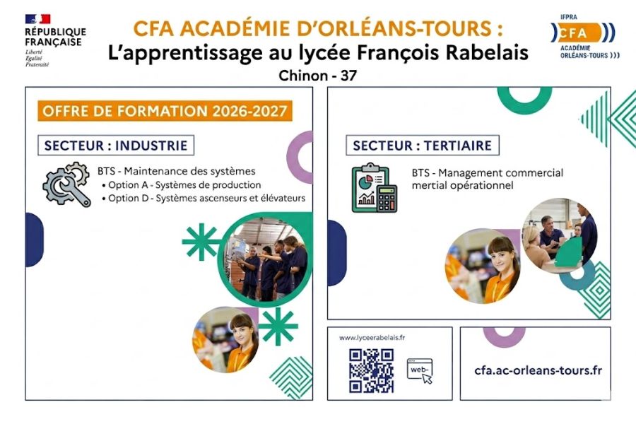 Le lycée Rabelais propose une carte de formation particulièrement riche et diversifiée, permettant à la très grande majorité des élèves du Chinonais de suivre le parcours de leur choix, dans le cadre des enseignements obligatoires mais également des options facultatives. Vous êtes invité(e) à consulter cette carte des formations sur notre site internet.